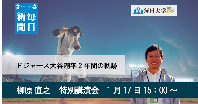 しかし、その華やかな舞台裏では様々な危機にも直面しております。栄光と苦悩の内 幕、大谷選手の素顔と魅力を、番記者として常に帯同してきたスポニチ ・柳原記者が余 すことなくお話しします。